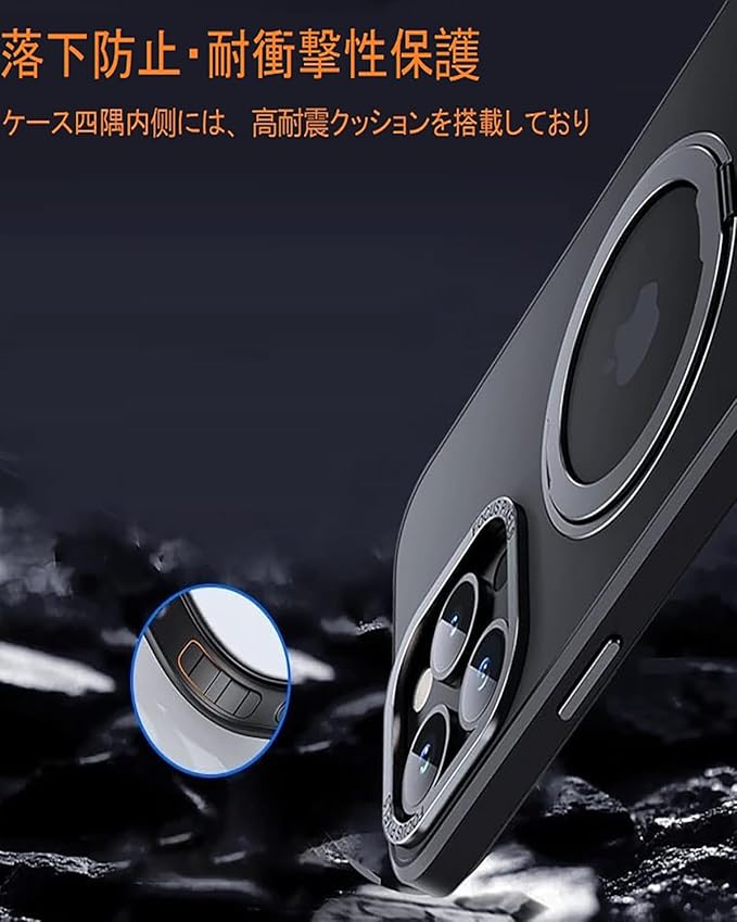 【米軍MIL規格の落下防止・耐衝撃性保護】スマホの画面やカメラレンズの落下による損傷を保護するために、レンズやエッジよりも少し高いデザインを採用し、こんなの細部のデザインは安心感たっぷりのなっています。スマホをしっかり保護します。更にケース四隅には、高耐震クッションを搭載しており、iPhoneを落下などの衝撃からしっかりと守ります。