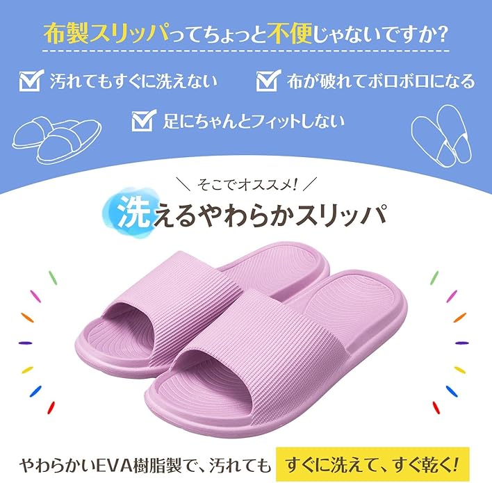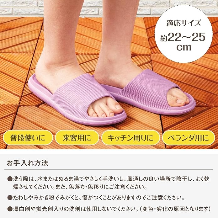 コモライフ 洗えるやわらかスリッパ 適応サイズ 約22~25㎝ 水洗いできる 普段使いに 来客用に キッチン周りに ベランダ用に サンダル