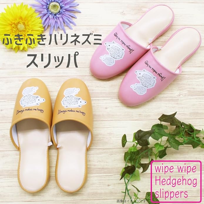 オクムラ スリッパ お手入れ簡単ふきふきビニール ハリネズミ フリーサイズ 濡れてもサッと拭ける お手入れ簡単 底は滑りにくいPVCレザー