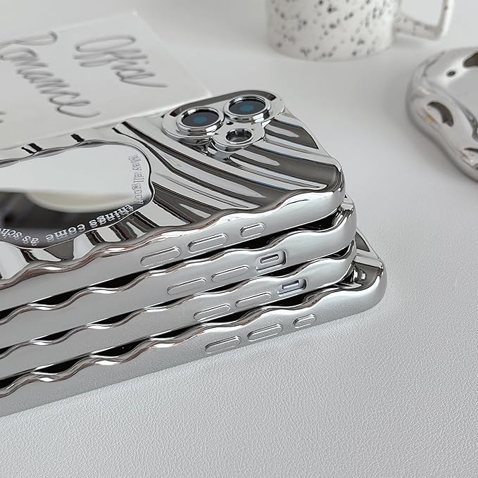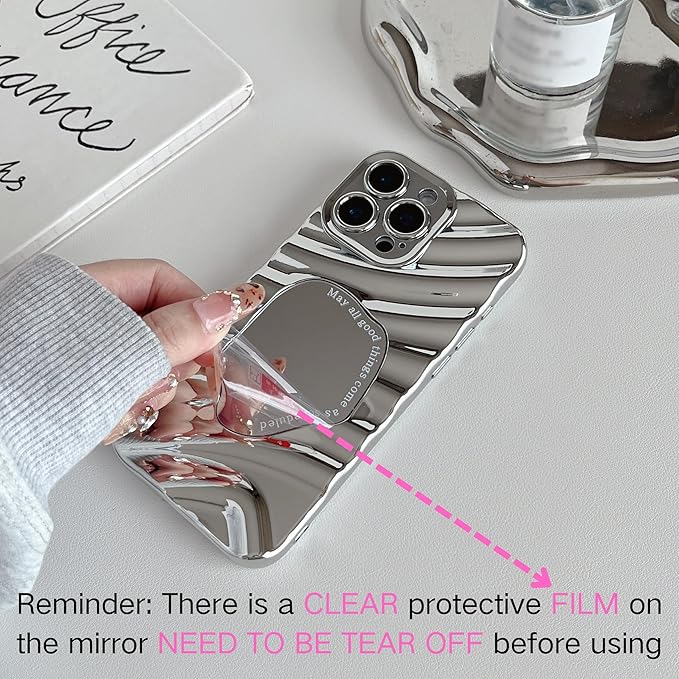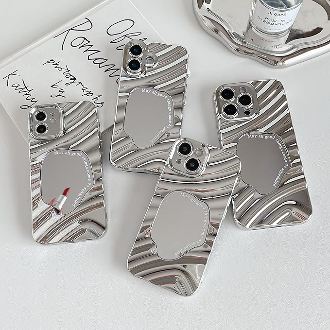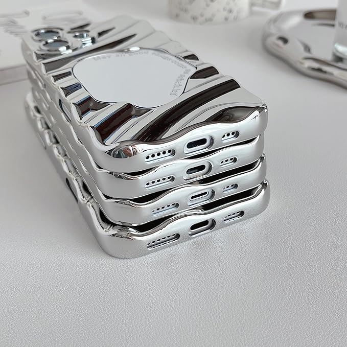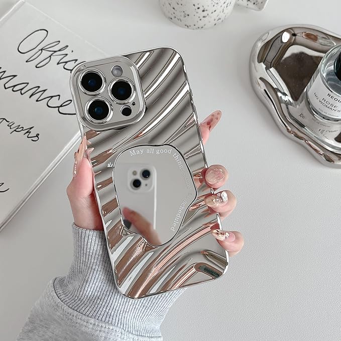 ZTOFERA iPhone 15 Pro Max ケース用、可愛いかわいいミラー鏡波水波紋模様メイクおしゃれ女子女性、で柔らかいTPUバンパースマホケースiPhone 15 Pro Max用、銀 | KAZESHOP