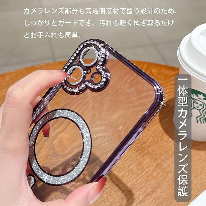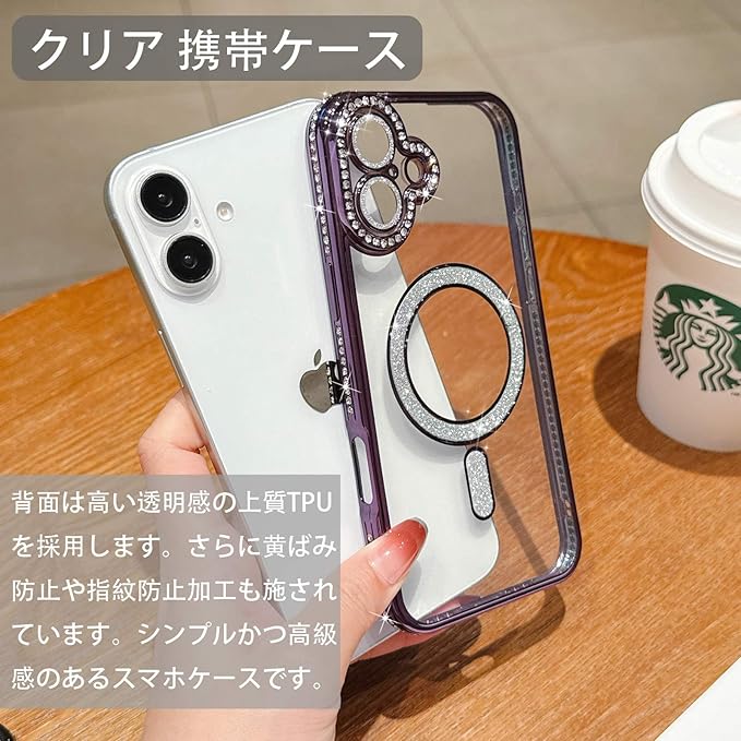 【美しいデザイン】シンプルなクリアケースにラインストーンやラメが華やかな印象をプラスしているスマホケースです。背面は高い透明感の上質TPUを採用します。さらに黄ばみ防止や指紋防止加工も施されています。シンプルかつ高級感のあるスマホケースです。軽量かつ耐衝撃性に優れ、日常使いに適したケースです。
