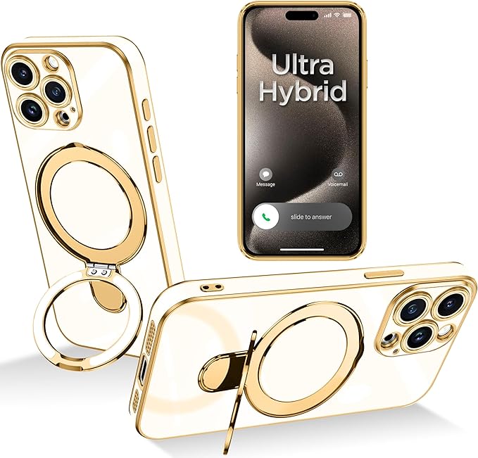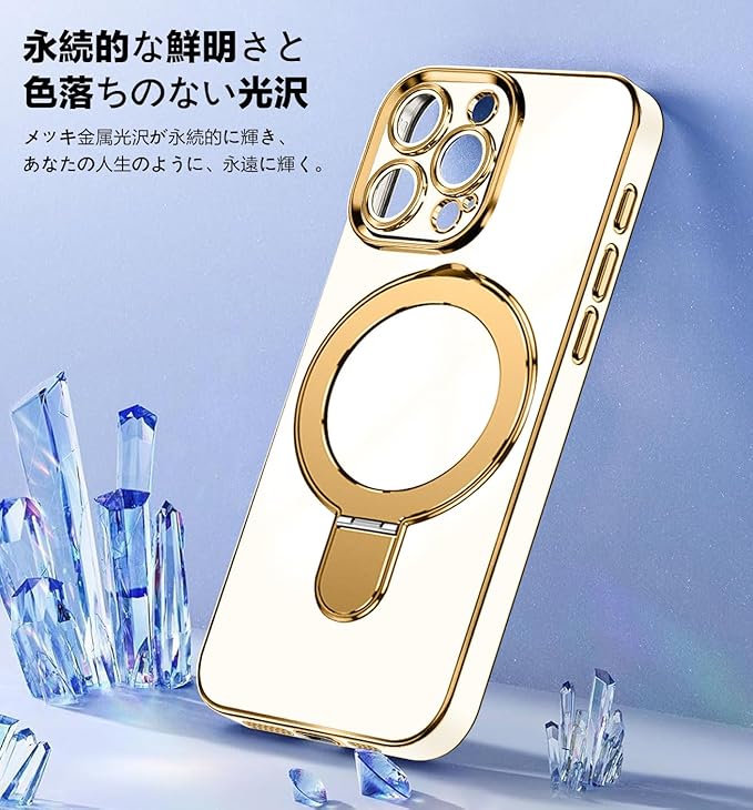For iPhone 15 Pro Max 用 ケース Magsafe対応 マグネット搭載 リング付き ストラップホール付き スタンド機能 縦横両対応 TPU 衝撃吸収 滑り止め 落下防止 隠しスタンド ワイヤレス充電 アイフォン 15 プロ マックス カバー(ホワイト) | KAZESHOP