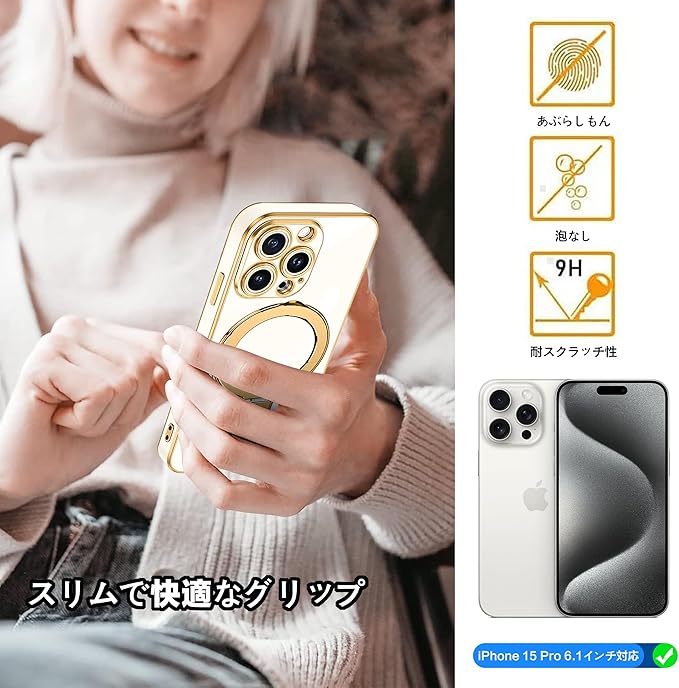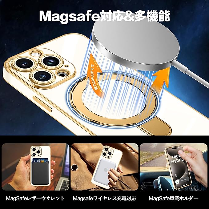 「Magsafe対応」ケースをつけたままマグセーフ機能を快適に使用できます。背面に薄くて強いマグネット内蔵しています、ワイヤレス充電や車載ホルダーやアクセサリとのあらゆる充電に安定で接着ができ、差し込みのいらないより簡単により素早く充電できます。