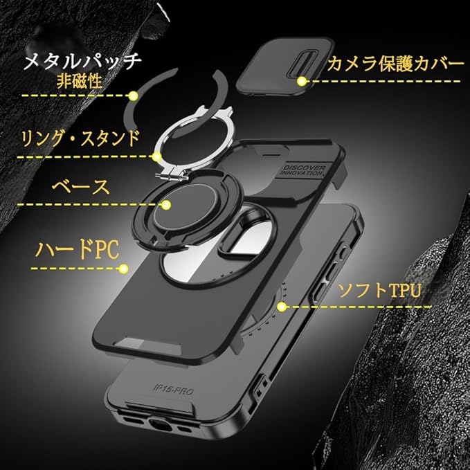 いphone11promax 用 ケース Magsafe対応 PC + TPU 二重保護 カメラの保護 落下防止 米軍MIL規格 耐衝撃 iPhone 11 Pro Max対応 スマホケース リング付き スタンド付き ブラック 黑 | KAZESHOP