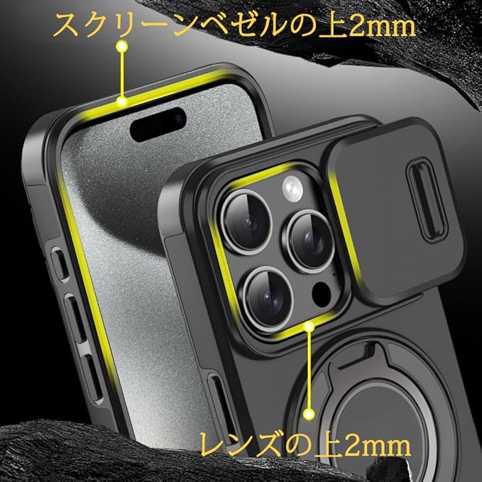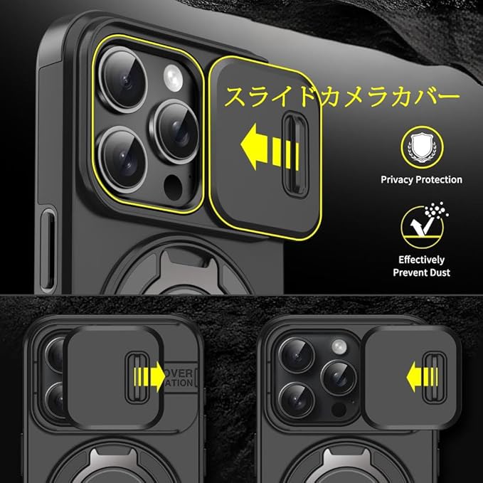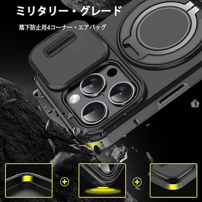 いphone13 Pro Max 用 ケース Magsafe対応 PC + TPU 二重保護 カメラの保護 落下防止 米軍MIL規格 耐衝撃 iPhone13promax対応 スマホケース リング付き スタンド付き ブラック 黑 | KAZESHOP