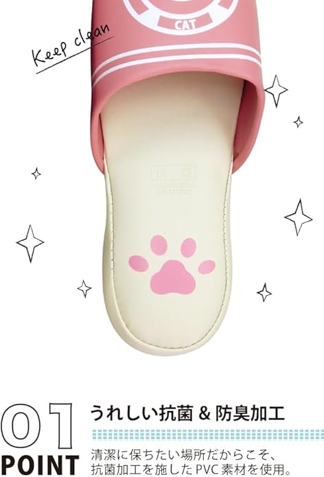 [FASPROJECT] トイレスリッパ ネコ柄 レディース (フリーサイズ : 約~25.0cm) 抗菌 ビニール TOILET サニタリー トイレタリー スリッパ 女性用 01091 01092 01093 | KAZESHOP