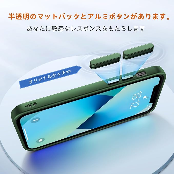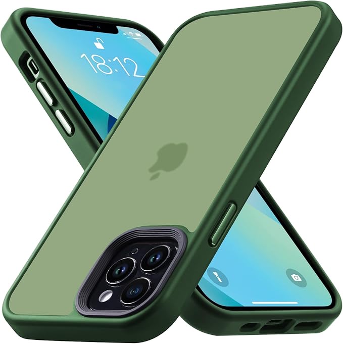 iPhone 13 Pro Max 用 ケース 耐衝撃 滑り止め 指紋防止 米軍MIL規格 マット仕上げ ストラップホール付き SGS認証 黄変防止 耐久性 カバー ワイヤレス充電対応 アイフォン いphone 13 Pro Max 用 6.7 インチ ケース グリーン | KAZESHOP