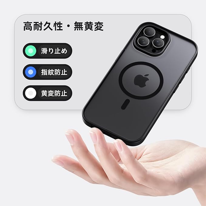 iPhone 16 Pro Max ケース 2024新型 iPhone 16 Pro Max 用 ケース 米軍MIL規格 耐衝撃 Magsafe対応 マグセーフ対応 半透明 マット仕上げ 滑り止め ワイヤレス充電対応 黄変防止 指紋防止 PC背面 耐久性 アイフォン 16 プロ マックス対応 6.9インチ ケース (ブラック) | KAZESHOP