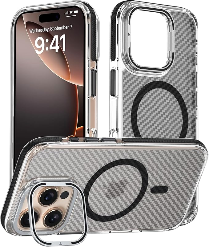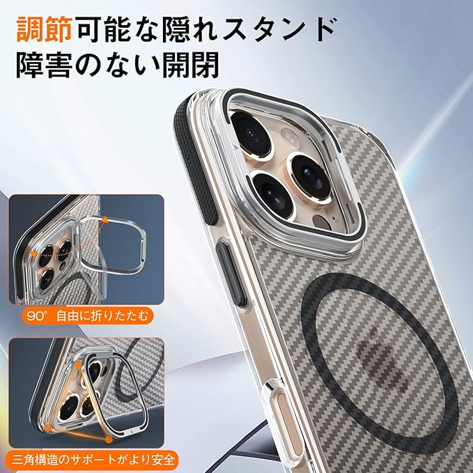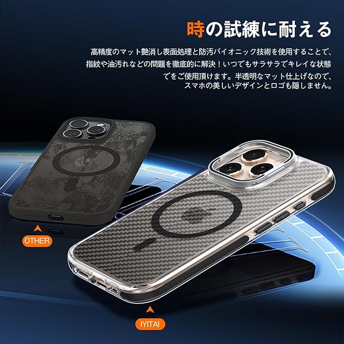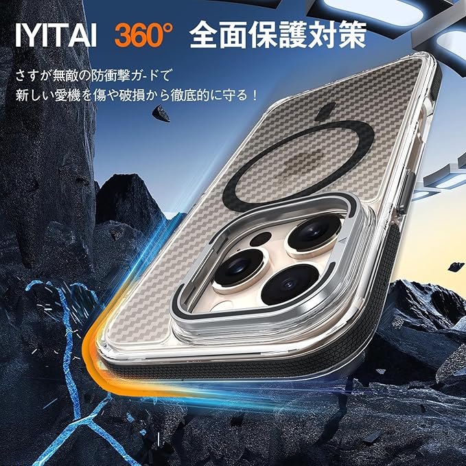 【レンズスタンド!MagSafe対応!】iYiTai iPhone 16 Pro Max 用 ケース 6.9インチ カメラレンズ保護・スタンド一体 MagSafe対応 マグネット搭載 米軍MIL規格の保護 耐衝撃 炭素繊維条痕 半透明朦朧感 落下防止 指紋防止 黄変防止 アイフォン16 プロ マックス用 カバー | KAZESHOP