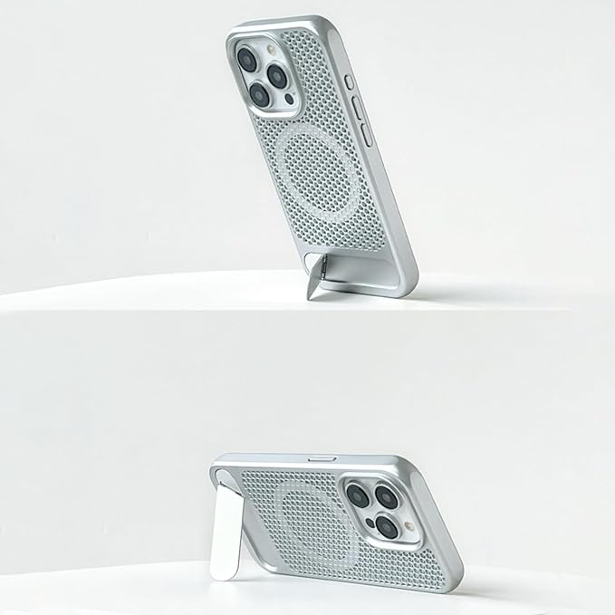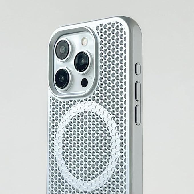 放熱冷却機能:ケースは特殊なPC素材を使用しており、継続的に断熱効果を発揮します。周囲の「放熱メッシュ」により、iPhoneの効果的な放熱が可能です。ケースには多数の小さな穴があり、熱を逃がしやすくし、デバイスの過熱を防ぎます。