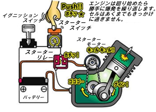 始動スイッチを押しても「カチカチ」と音がせずセルモーターが回らない場合、スターターリレーの導通不良が考えられます。スターターリレーの交換はとても簡単なので 故障かなと思ったらサクッと新品に交換しましよう。