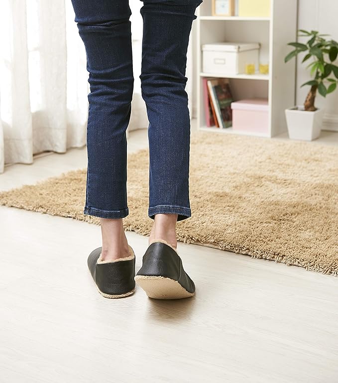 履いて歩くだけでお部屋の汚れをしっかりキャッチ! 「ファータイプ」のお掃除もできるフェイクレザースリッパ。
