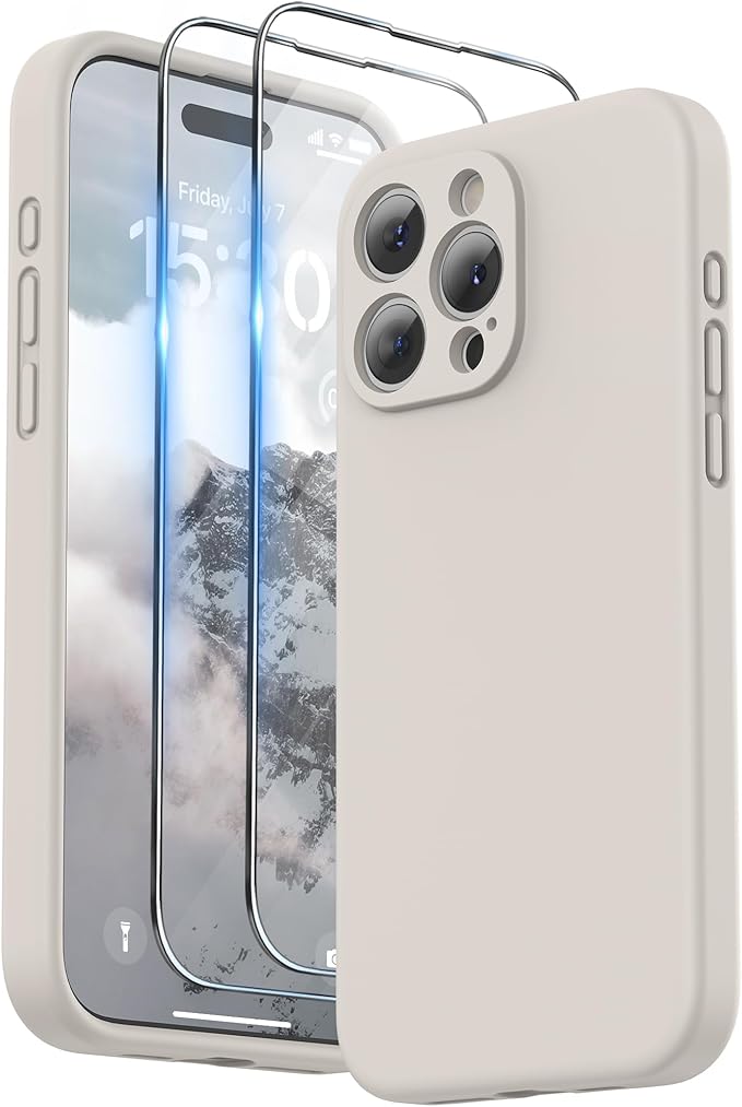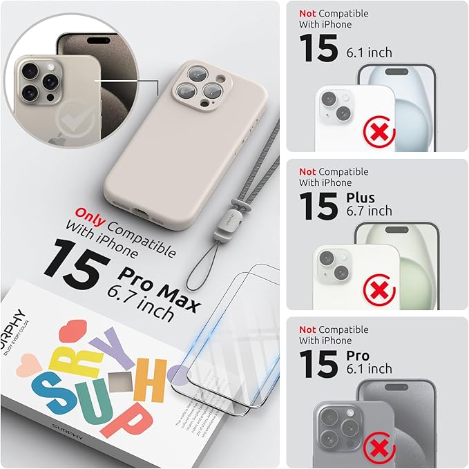 SURPHY iPhone15pro max用ケース シリコン,フィルム付き ストラップ付き 6.7インチ対応(2023) 携帯ケース iPhone15プロマックス(カメラの全面保護) 耐衝撃 超軽量 指紋防止 全面保護 iPhone15pro max用ソフトカバー (ストーングレイ) | KAZESHOP