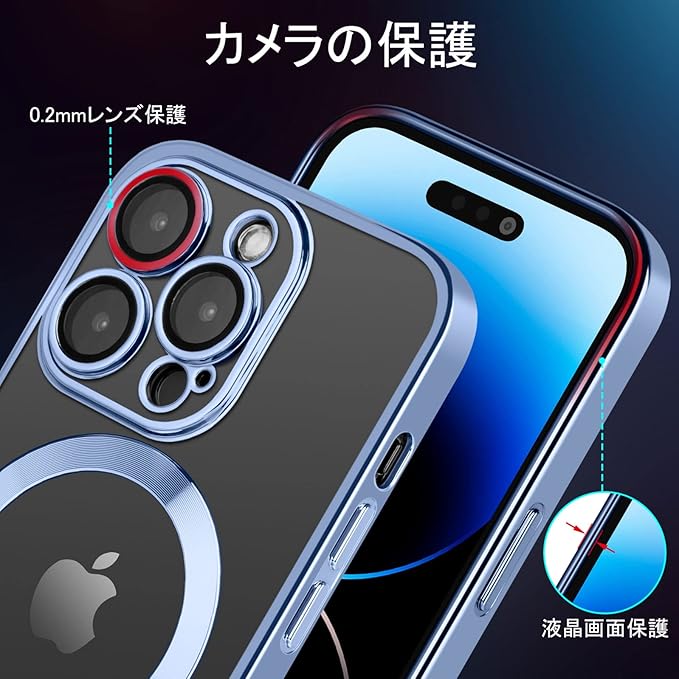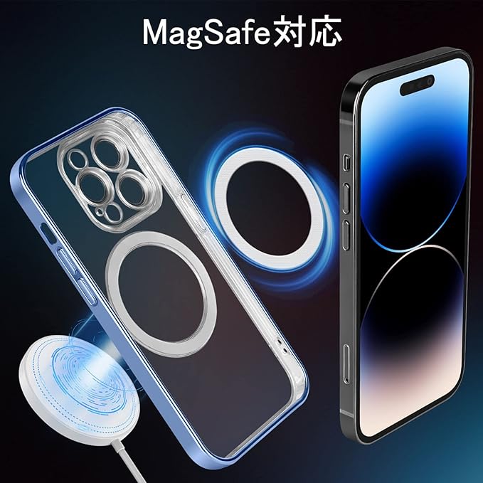 iPhone14promax ケース iPhone14Pro Max 用 ケース Magsafe対応 米軍MIL規格取得 耐衝撃 スマホケース 指紋防止 黄変防止 カメラ保護 透明 2023年新型 アイホン14pro max 用 6.7インチ (ブルー) | KAZESHOP