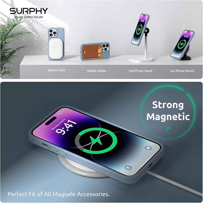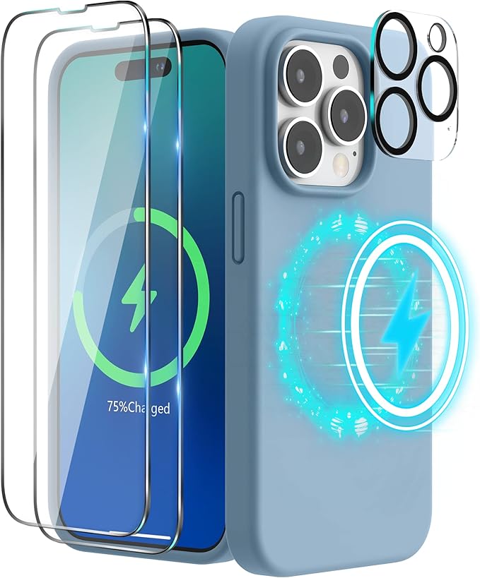 「4 in 1」SURPHY iPhone14 pro max用ケース+スクリーンフィルム2枚+カメラフィルム1枚, 6.7インチ(2022) MagSafe対応 シリコンケース iPhone14 pro max用ソフトカバー (ブルーフォグ) | KAZESHOP