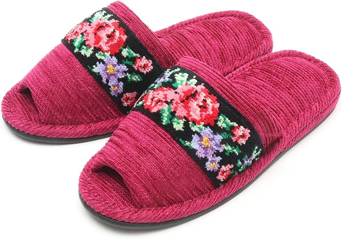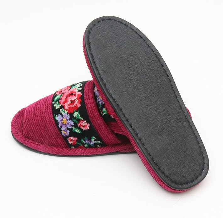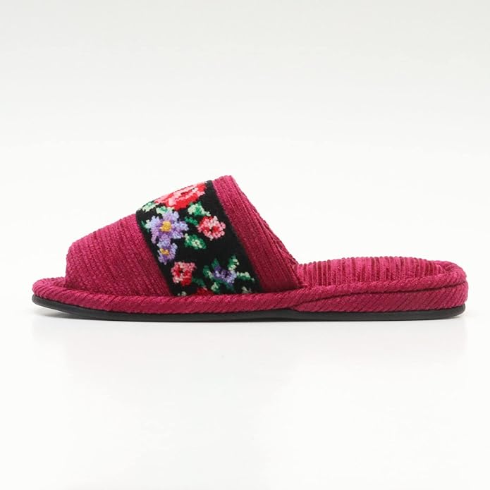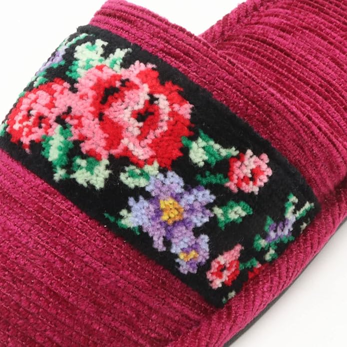 日本製 シェニール織 外縫いスリッパ [洗える 洗濯可 ルームシューズ バラ柄 ローズ柄]