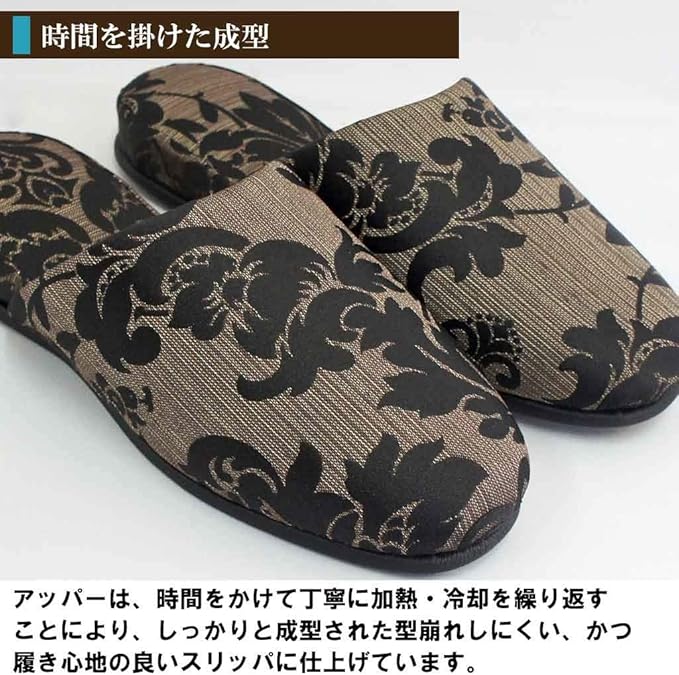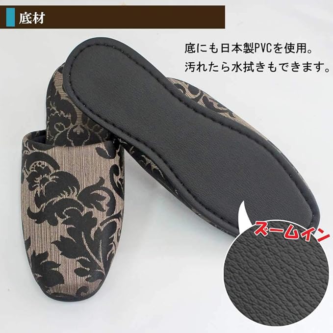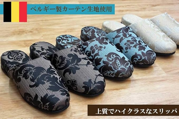 ベルギー製のインテリア用高級生地を使用しています。スリッパではなかなか見られないレベルの素材ですが、スリッパもインテリアの一部と捉えると存在意義のある製品です。実際、価格にしては人気があり、よく売れています!