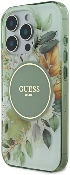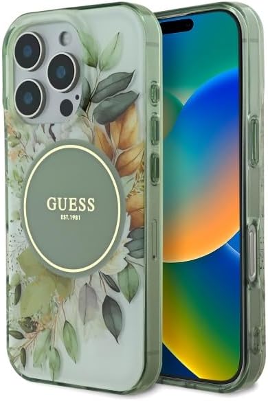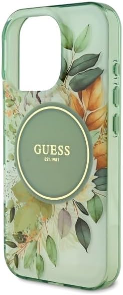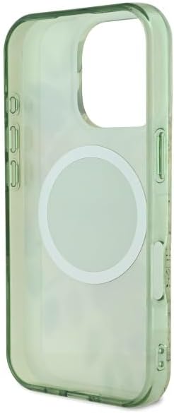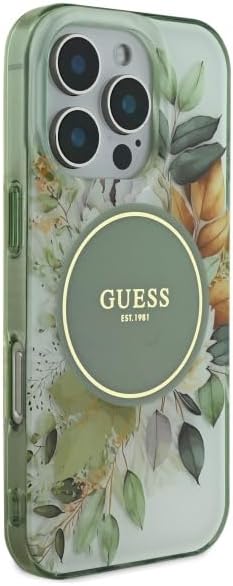 GUESS iPhone 16 Pro Max用ケース ハードケース(IML)MagSafe対応|フラワー&トーナルサークル グリーン
