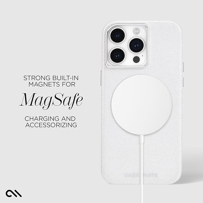 【Case-Mate】 iPhone 15 Pro Max 用 ハイブリッド ケース [抗菌・落下耐衝撃テスト3.6mクリア] MagSafe対応 シンマー イリディセント キラキラ ラメ シルバー Shimmer - Iridescent CM051660 | KAZESHOP