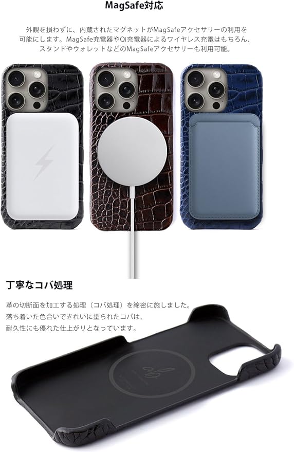 外観を損わずに、内蔵されたマグネットがMagSafeアクセサリーの利用を可能にします。MagSafe充電器やQi充電器によるワイヤレス充電はもちろん、スタンドやウォレットなどのMagSafeアクセサリーも利用可能。
