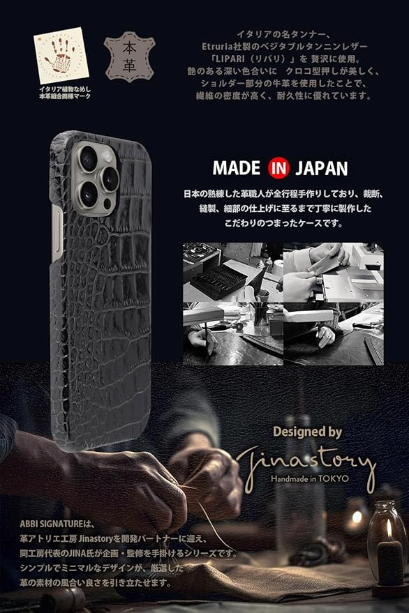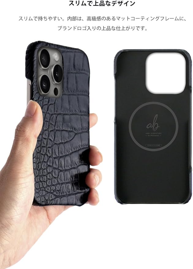 ABBI SIGNATURE iPhone 16 Pro Max ケース 日本製 イタリアン本革 LIPARI バックカバー MagSafe対応 [ ベジタブルタンニンレザー ハンドメイド 薄型 ミニマルデザイン ワイヤレス充電 ] アイフォンケース 背面カバー ABS27358i16PM ブラック 【国内正規品】 | KAZESHOP