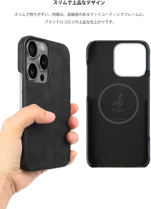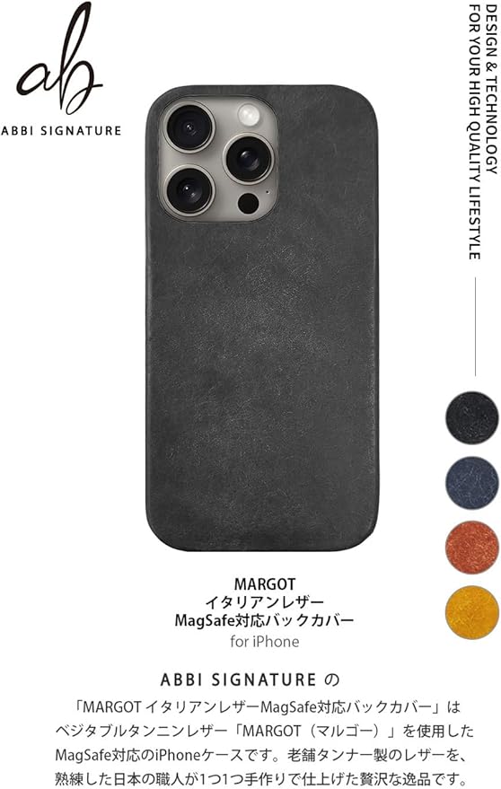 ABBI SIGNATURE iPhone 16 Pro Max ケース 日本製 イタリアン本革 MARGOT MagSafe対応 バックカバー [ ベジタブルタンニンレザー 手作り スリム ミニマルデザイン ワイヤレス充電 ] アイフォンケース 背面カバー ABS27337i16PM ブラック 【国内正規品】 | KAZESHOP