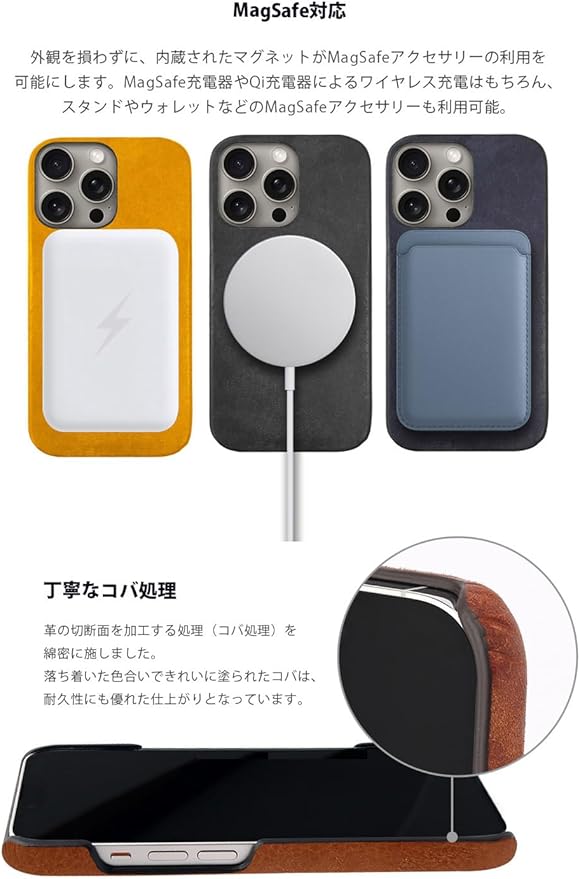 外観を損わずに、内蔵されたマグネットがMagSafeアクセサリーの利用を可能にします。MagSafe充電器やQi充電器によるワイヤレス充電はもちろん、スタンドやウォレットなどのMagSafeアクセサリーも利用可能。