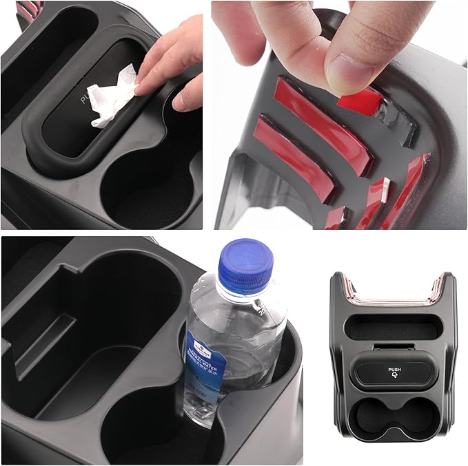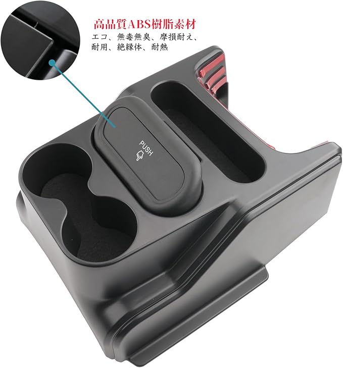 【多機能設計】カップホルダー+収納ボックス+ミニゴミ箱の便利な三位一体デザイン。飲み物、スマホ、小銭、駐車券カード、コイン、メガネ、クレジットカードや鍵などの小物をすっきり収納可能。小物関係の収納には最高です。さらにゴミ箱付きで、車内を清潔に保つ習慣が自然に身につきます。