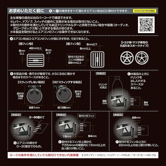 ホルダー部が水平方向に10 、20 、30 の3段階動かすことができ、ウィンカーレバーやドアノブへの干渉を避けることができます。多様なドリンク容器に対応しています。