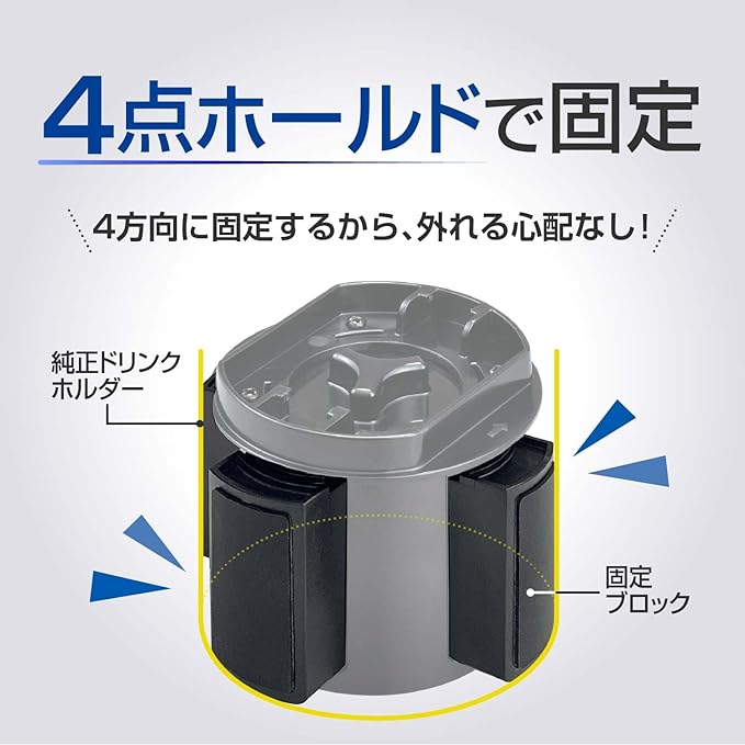 ●4カ所の固定ブロックで純正ドリンクホルダーにガッチリ固定できます。