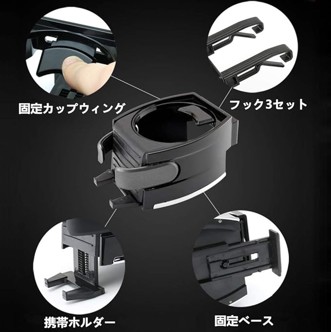 【高品質素材で長持ちするドリンクホルダー】 耐久性と熱伝導性に優れた高品質 ABS 素材を採用。スマホを固定するフックは滑り止めシリコン製で、機種表面を傷つけることなくしっかりホールドします。長期間の使用でも変形や破損が少なく、安心してご利用いただけます。