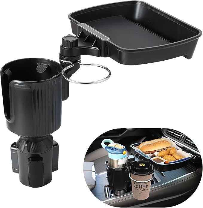 ✅【移動中の食事に最適】 当社のカーカップホルダートレイは、食事を載せるのに十分な大きさを備えています。フォンスロットがあるため、同時に動画を視聴することも可能です。Sancaral のカップホルダーエクスパンダーが、移動中の食事を便利で楽しいものにしてくれます。