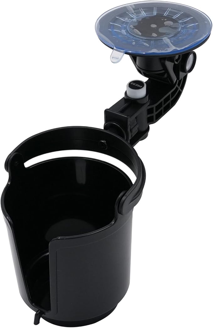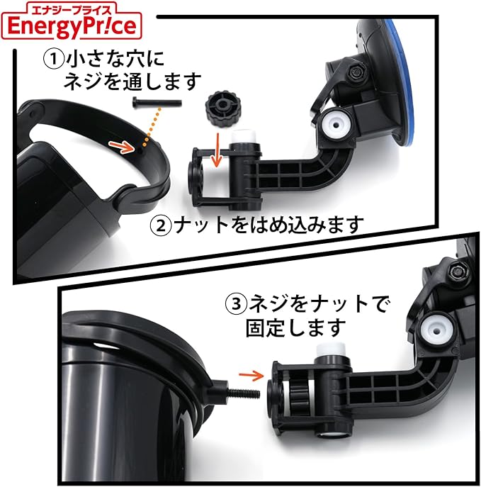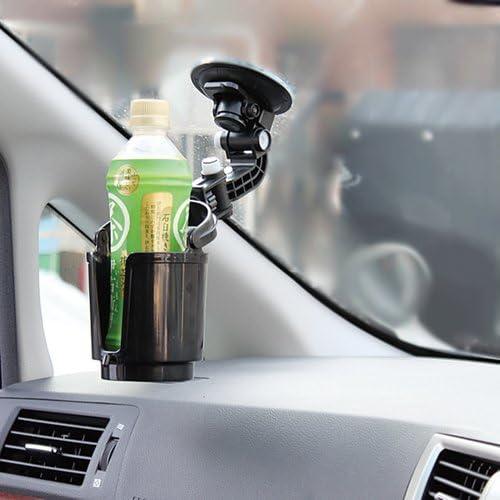 特長:取付は車内の窓などフラットな箇所にくっつけるだけ! ロックレバーを下せば直径90mmの大型吸盤で強力に設置できます。 350mlのアルミ缶や500mlのペットボトルまで幅広く対応してます。 アーム部分やダイヤル式角度調整で自由に調整でき、お好みの位置にホルダー(カップ)を持ってくることができます。