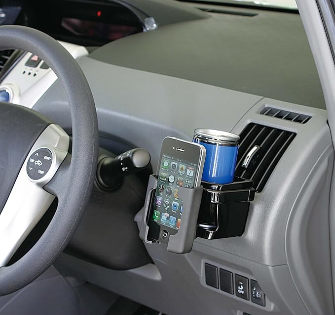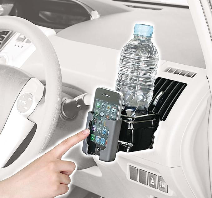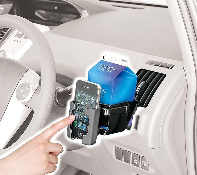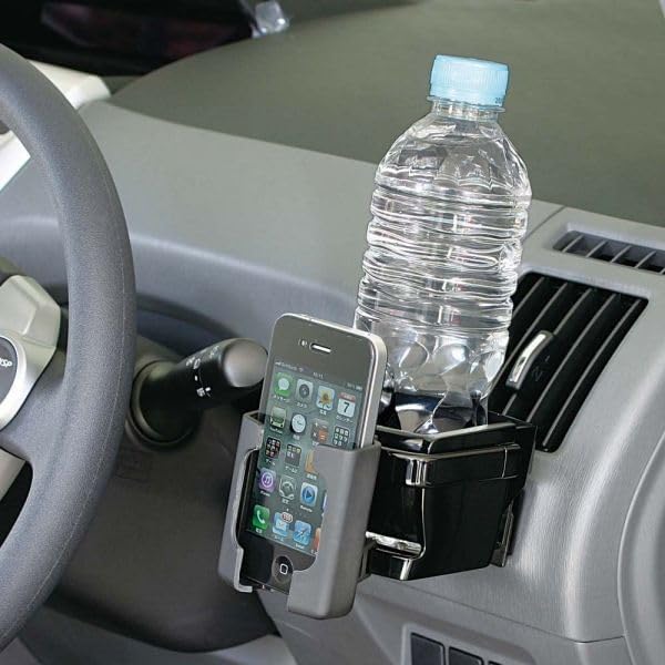 スマートフォンとドリンクを同時に収納することができます。500mlペットボトル、500ml紙パック、細缶、太缶をしっかりホールドします。専用取付フック付。