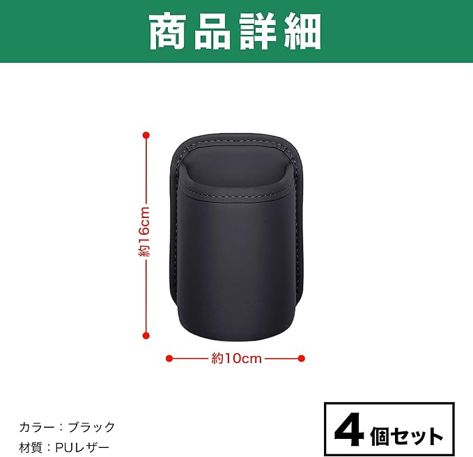 セット内容:4個セット カラー:ブラック サイズ:約10 16cm 材質:PUレザー ※モニターの環境等により、色の見え方に若干差が生じる場合がございます。