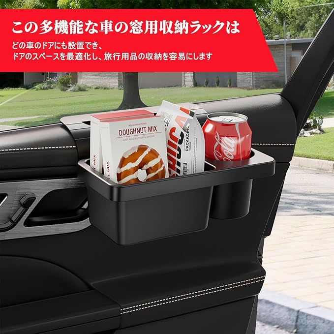 車用 多機能 カップホルダー 収納ボックス スマホスタンド 鍵ホルダー付き ドアサイド取付 軽量ABS樹脂製 コンパクト設計 窓の隙間差込タイプ ドリンクホルダー 小物入れ 車内整理 オーガナイザー SUV トラック 普通車 全車種対応 | KAZESHOP