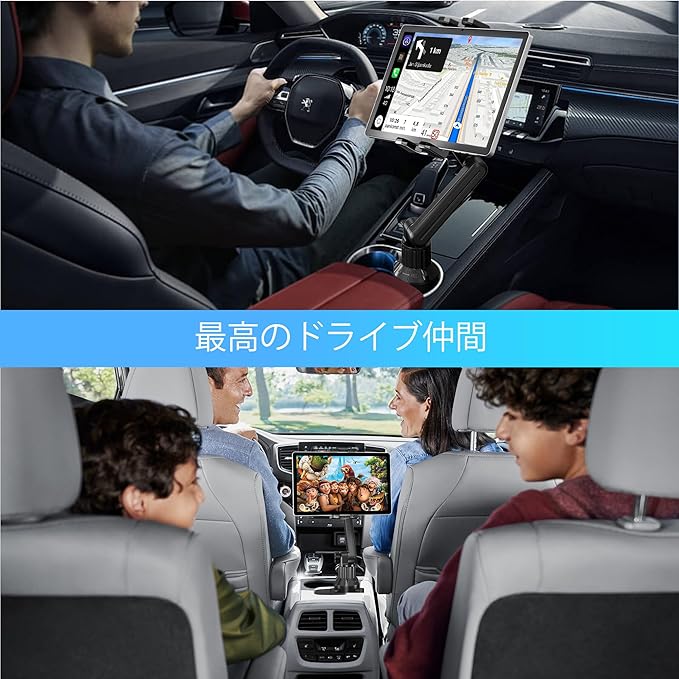 【簡単な取り付け】iPadホルダーカップホルダーは工具不要で簡単に組み立て可能です。後部座席の乗客にも最適です。車、トラック、SUV、ミニバン向けの素晴らしいロードトリップ必需品です