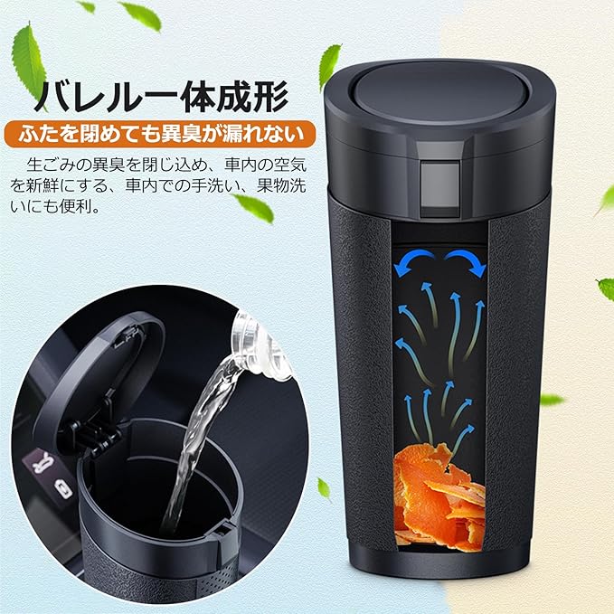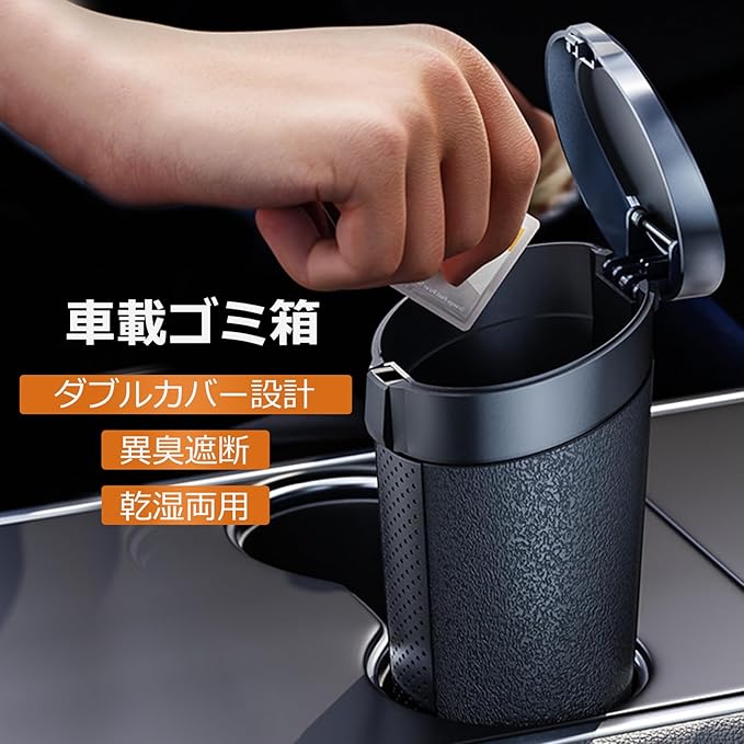 【二重密封構造で液漏れ&臭いを徹底防止】 「車内で液体ゴミや食べ残しのニオイが気になる…」そんな悩みを解消!ばね式カバープレートはダブルシールリングを搭載し、0.5秒で片手投入&隙間ゼロの密閉設計。さらに内蔵活性炭フィルターが生ゴミや湿ったゴミの異臭をしっかり吸着し、車内の空気を清潔に保ちます。