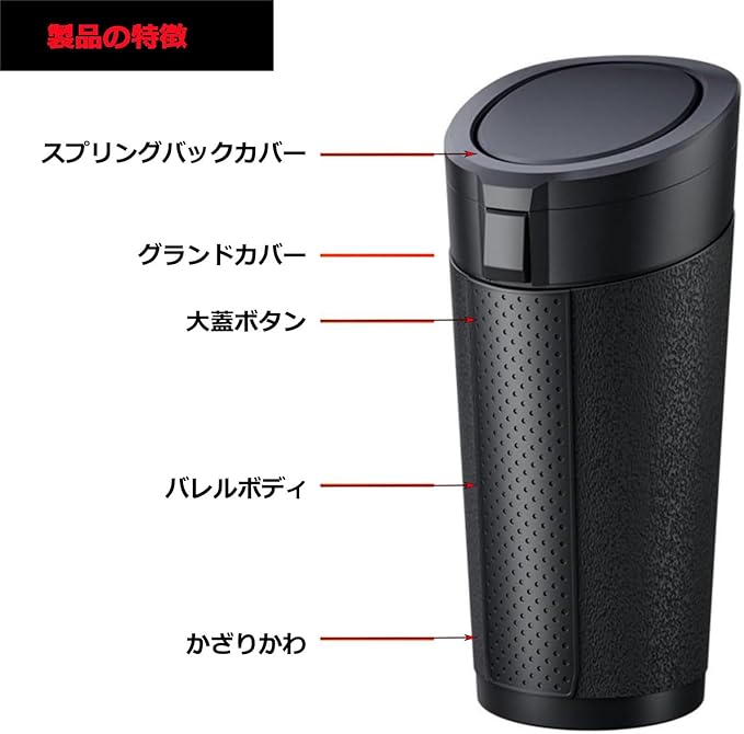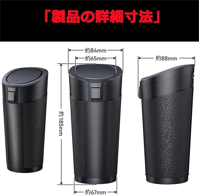 【抜群の安定性&転倒防止構造】 「カーブや急ブレーキで倒れた…」という経験に対応。自重178gの安定感+88mmスリムボディ設計により、車内のカップホルダーや隙間にしっかりフィット。波紋滑り止め底&360 回転ロックで振動にもズレにくく、ゴミの飛び散りゼロを実現します。