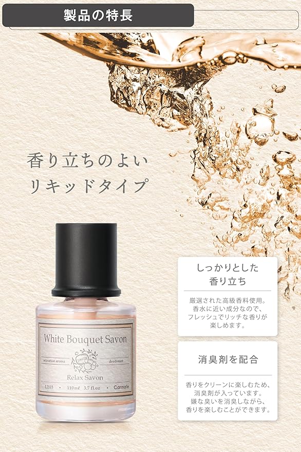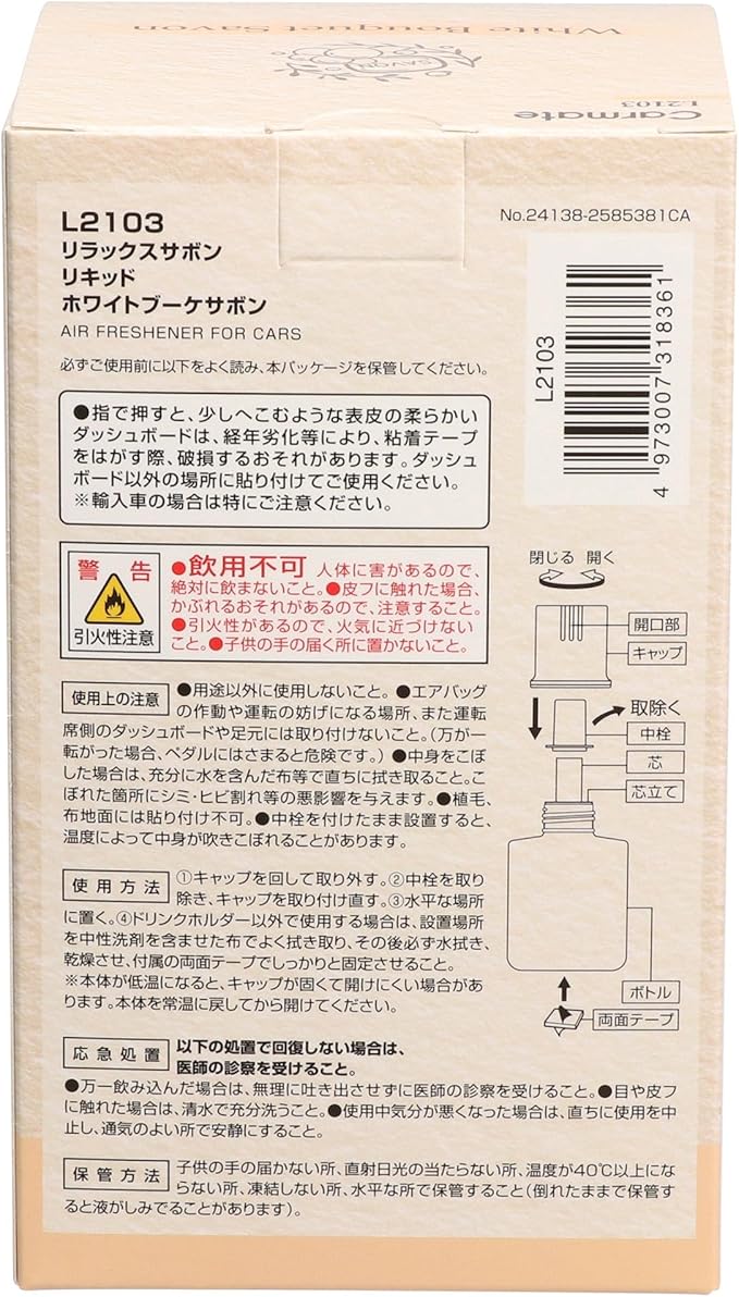 カーメイト(Carmate) 車用 消臭 芳香剤 ドリンクホルダー ダッシュボード 設置 置き型 【 ホワイトブーケ サボン 】 リラックスサボン リキッド 液体 110ml 【心地よいフローラルの香り】約45日間 長持ち L2103 | KAZESHOP
