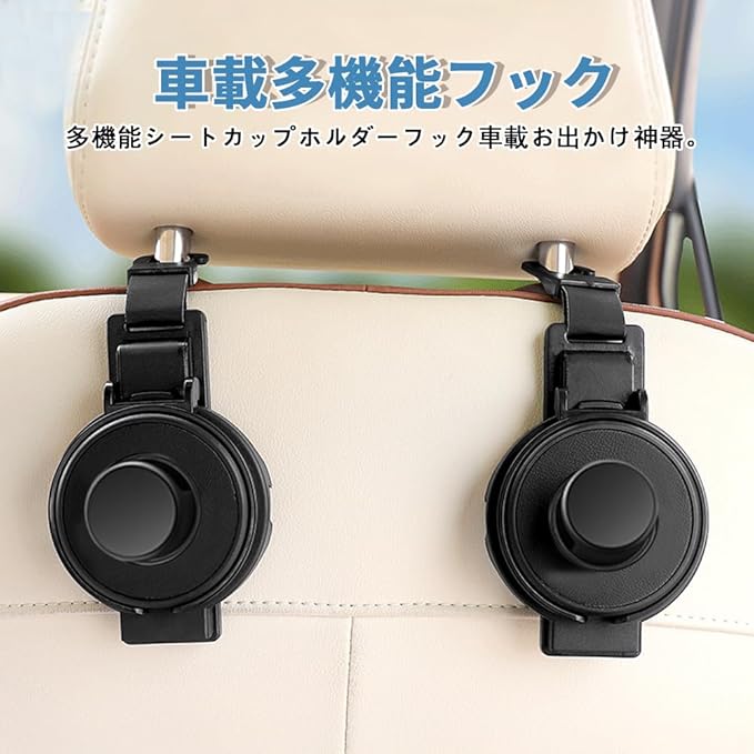 多機能カーフック車用フック 2個セット 3in1 折り畳み式車用 ドリンクホルダー 車 カップホルダー 車のシートバック用ヘッドレストフック 電話ホルダー ハンギングハンドバッグ傘用 収納 車用フック 簡単取付 ブラック | KAZESHOP
