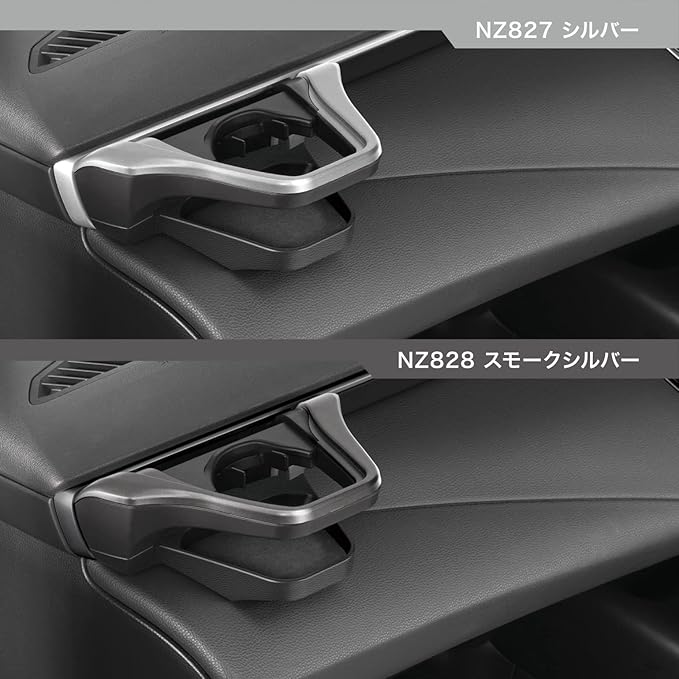 【まるで純正品のような洗練された専用デザイン】カローラ専用デザインなので、樹脂もカローラの内装色と同じ色になるように調色した樹脂を使用しています。ボディはカローラの内装に合わせた表面デザインを施し、トップフレームは各車種・グレードのエアコン吹き出し口のカラーに合わせました(特別仕様車などを除く)。〇トップフレームのカラーバリエーション・カローラ / カローラツーリングのS / G-Xグレードと、カローラスポーツの内装に合わせたシルバー(NZ827)・カローラ / カローラツーリングのW Bグレードと、GRカローラの内装に合わせたスモークシルバー(NZ828)
