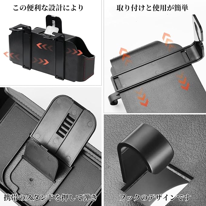 【省スペースで簡単設置】:この車用多機能収納ボックス、シートバックに取り付けることで、車内の未使用スペースを賢く活用します。取り付けは工具不要で、ティッシュホルダー 車シートに簡単に取り付けられます。車内の小物を整理整頓し、より清潔で整頓された車内空間を実現します。