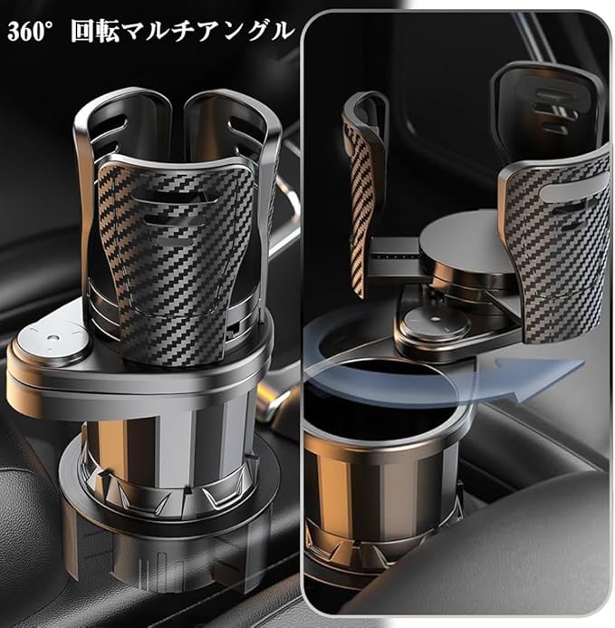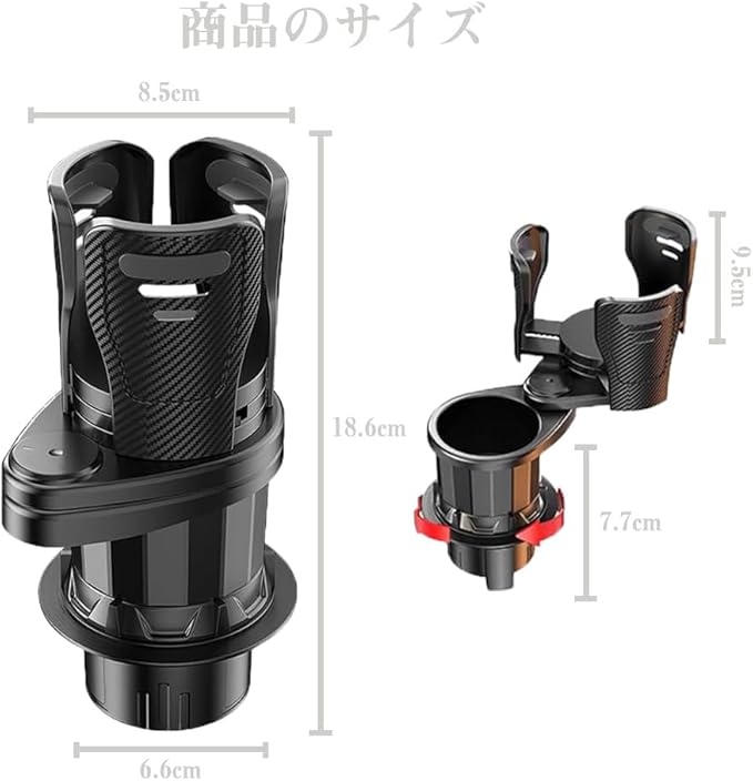 【ユニバーサルサイズ対応のマルチカップホルダー】車載カップホルダーは、さまざまなサイズのドリンクに対応可能。350mlの缶コーヒーから500mlのタンブラー、太めのスターバックスカップまでしっかり固定。