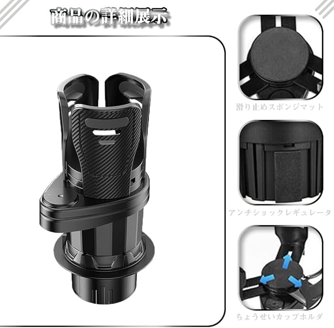【滑り止め&振動防止機能】内側に滑り止めシリコン素材を採用し、走行中の振動でもドリンクがグラつきにくい構造。高速道路や悪路でも安心して使用でき、こぼれ防止に最適です。