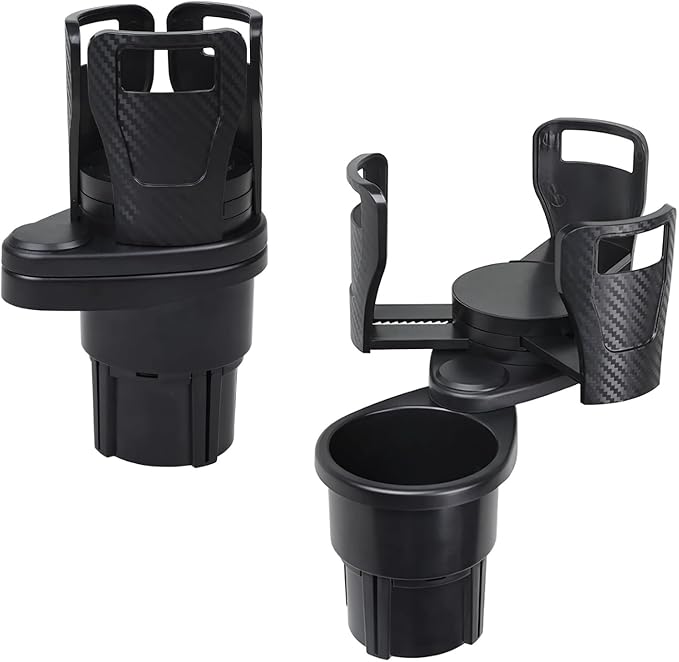 " 【便利な2in1設計折りたたみ式ドリンクホルダー】車内のスペースを効率的に活用。360度回転可能で、1つのホルダーが2つに展開。飲み物やカップ麺をしっかりと固定しつつ、省スペース設計で快適な車内環境を提供します。取り付けも簡単で、工具不要でどなたでもすぐに使えます。