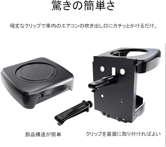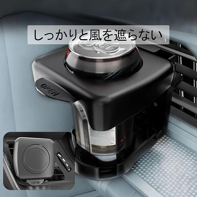ドリンクホルダー 車用 折りたたみ ブラック コンパクト すき間収納 エアコン口 取り付け 車 カップホルダー 拡張 増設 軽量 調整可能 車内 収納 省スペース カーグッズ 運転 ドライブ 便利 コーヒー ペットボトル タンブラー 対応 すっきり クルマ 車用品 | KAZESHOP