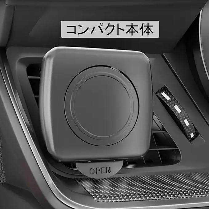 【コンパクト本体】▶ 視界や操作の邪魔にならない! スマートなサイズ設計のため、エアコンルーバーに取り付けても、フロントガラスの視界やエアコンの風向き、各種スイッチ操作を妨げることがほとんどありません。車内をすっきりと保ちながら機能します。