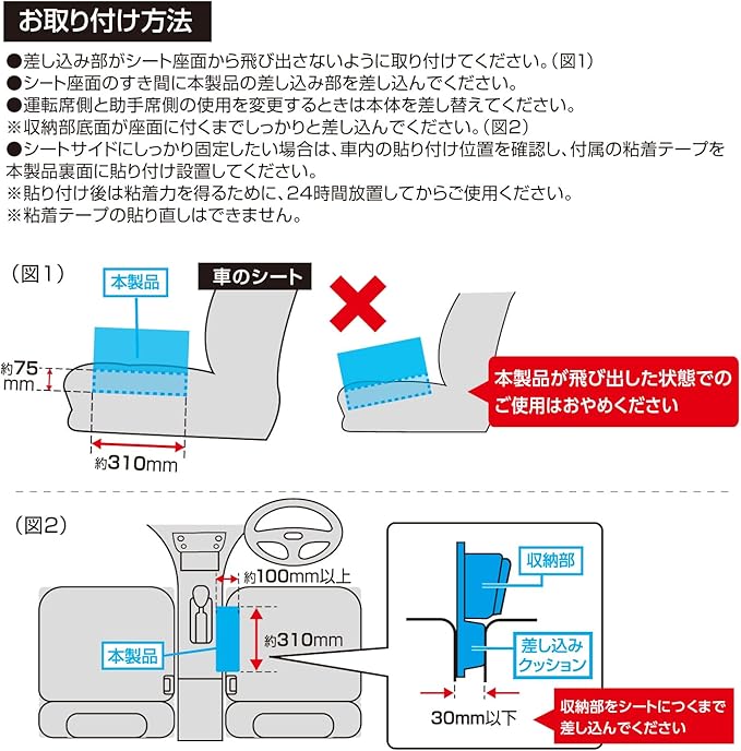 ●シートサイドに差し込むだけで簡単に取り付けができます。