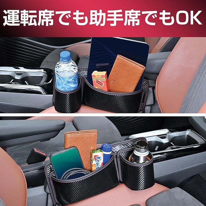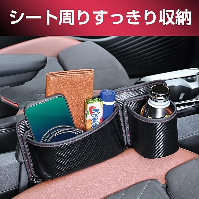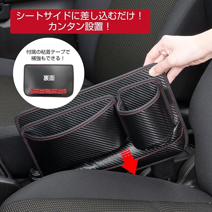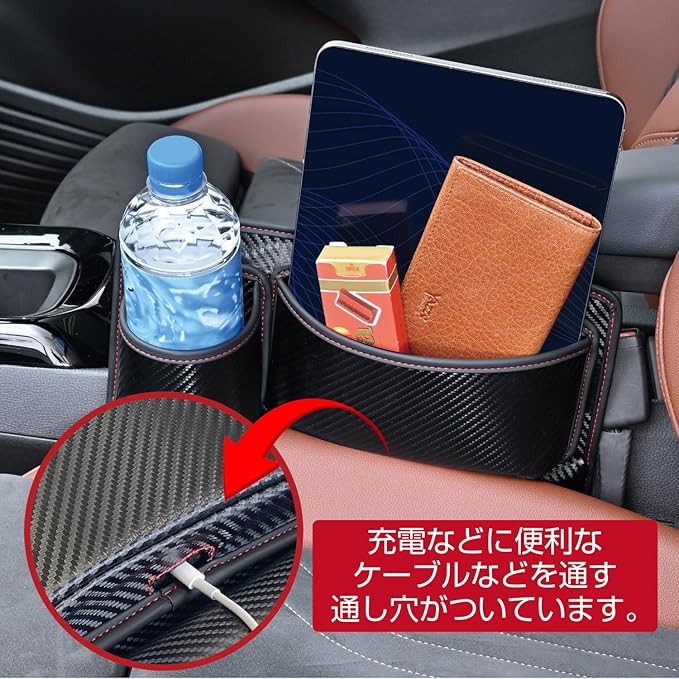 セイワ(SEIWA) 車内用品 シートサイドポケット シートポケット カーボン WA134 シートサイド差し込みドリンクホルダー スマホ 小物 スッキリ 充電コード通し穴付き ポケット付替え可 補強テープ付属 運転/助手席兼用 | KAZESHOP